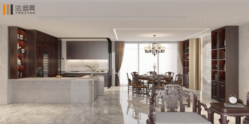 | - Китайская кухня: Натуральная нержавеющая сталь: Соответствует современному стилю и предлагает практические преимущества. Особенности шкафа | Китайская кухня: Стеклянные двери: Обеспечивают универсальное разделение пространства, позволяя создать две отдельные зоны для приготовления пищи. |