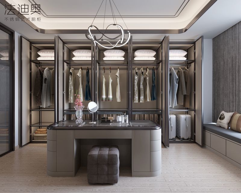 Этот гардероб представлен как система, ориентированная на дизайн, а не как стандартный SKU. Он использует контролируемую палитру отделок в сочетании с премиальной конструкцией шкафов из нержавеющей стали для создания более целостной визуальной идентичности для премиальных жилых проектов.