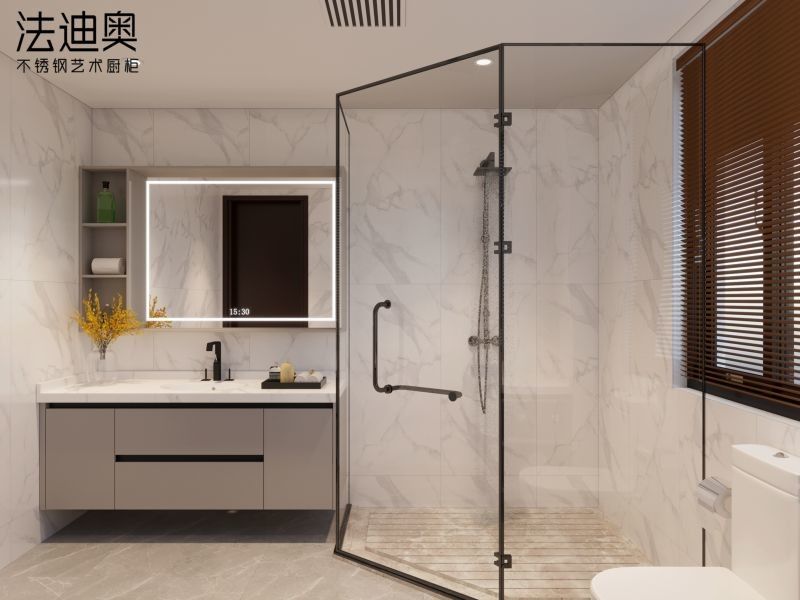 | В: Этот туалетный столик для ванной комнаты из нержавеющей стали в основном декоративный или действительно готов к проекту? Он воспринимается как готовый к проекту, потому что страница по-прежнему связывает стиль с премиальной конструкцией из нержавеющей стали, столешницей из белого кварца и планировкой бытовой техники. Это сохраняет связь языка дизайна с логикой исполнения. |