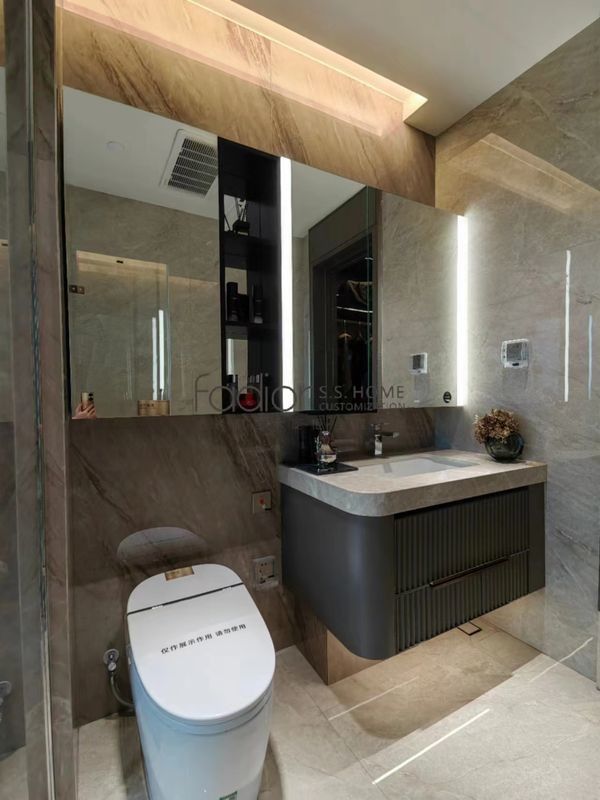 Эта ванная комната представлена как система, основанная на дизайне, а не как общий SKU.Он использует контролируемую палитру отделки вместе со структурой шкафа из нержавеющей стали, чтобы создать более четкую визуальную идентичность для высококлассных жилых проектов.