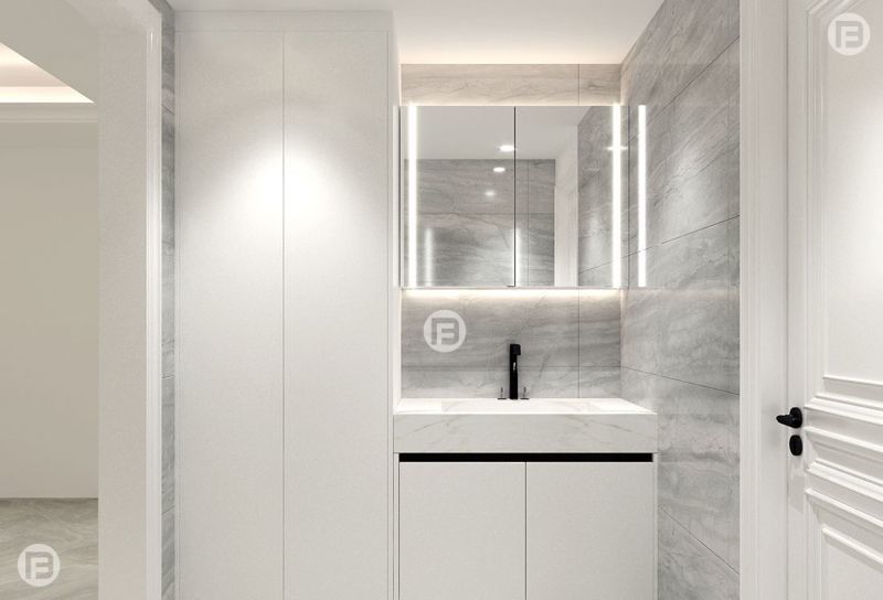 Эта ванная комната представлена как система, основанная на дизайне, а не как общий SKU.Он использует белый цвет в сочетании с конструкцией шкафа из нержавеющей стали Premium, чтобы создать более четкую визуальную идентичность для высококлассных жилых проектов.