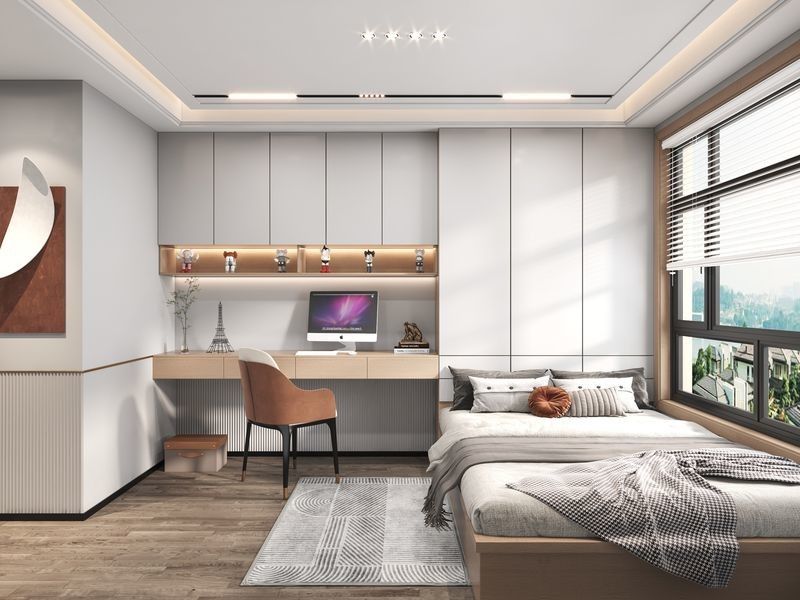 | Рабочее пространство | Интегрированный рабочий стол с просторной рабочей поверхностью и полками для книг и украшений, создавая специальный |