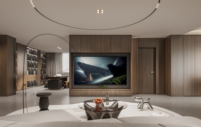 | Конструкция потолка | Белый потолок, оборудованный изогнутой светодиодной световой полосой, добавляет современной атмосфере и освещает |