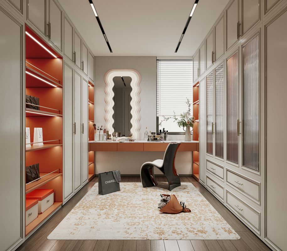 Этот гардероб представлен как система, основанная на дизайне, а не как общий SKU.Он использует белый цвет вместе со структурой шкафа из нержавеющей стали для создания более четкой визуальной идентичности для высококлассных жилых проектов.