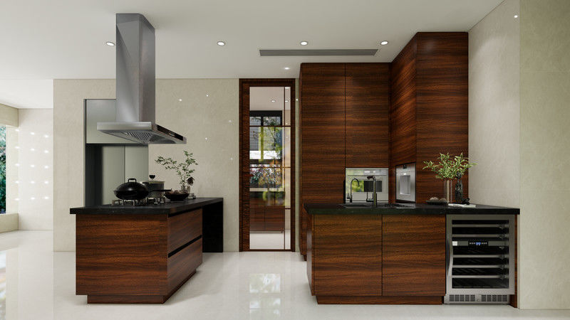 | В: Поддерживает ли этот элегантный, прочный и настраиваемый современный кухонный гарнитур из нержавеющей стали в стиле ореха интегрированную бытовую технику или демонстрационные элементы? Да. Текущая страница уже ссылается на интеграцию бытовой техники и организованное планирование хранения/демонстрации, что помогает командам по закупкам судить о том, может ли дизайн-язык распространяться на высокие модули, острова и зоны особенностей. |