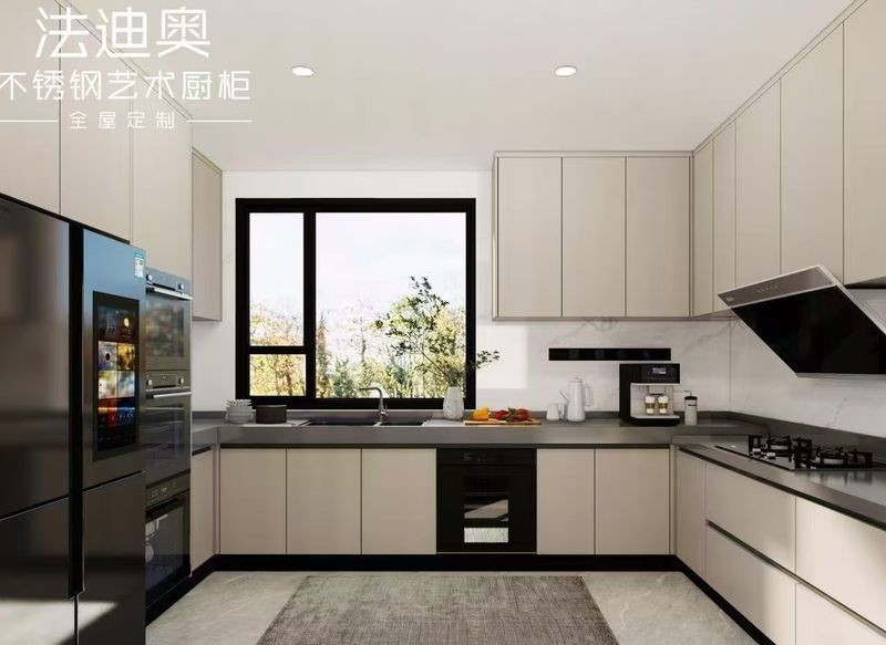 | В: Может ли этот U-образный кухонный шкаф из нержавеющей стали быть кастомизирован для проектных размеров? Да. Текущая спецификация уже указывает на согласование размеров на основе проекта вместе с U-образной планировкой и тепло-абрикосовыми дверными панелями, создающими мягкую и уютную эстетику, которая дополняет любой кухонный интерьер., поэтому страница поддерживает оценку индивидуальных проектов, а не только чтение фиксированного наличия на складе. |