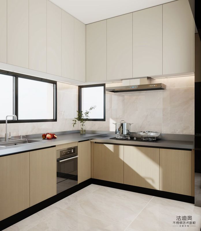 | В: Можно ли настроить этот г-образный дизайн кухонного гарнитура из нержавеющей стали со светлой текстурой дерева и гладкой планировкой под размеры проекта? Да. Текущая спецификация уже указывает на координацию размеров на основе проекта вместе с планировкой и обработкой поверхности, устойчивой к отпечаткам пальцев, маслу и влаге, для долговечности и легкой очистки, поэтому страница поддерживает оценку индивидуальных проектов, а не только фиксированный складской вариант. |