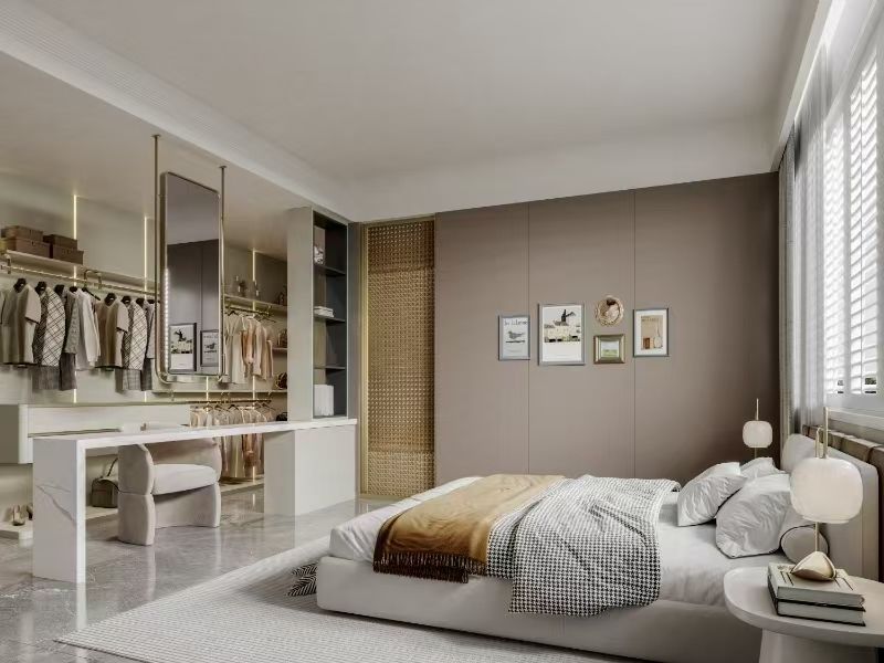 | Вопрос: Поддерживает ли этот Walk-in Closet интегрированные устройства или функции дисплея? Да. На текущей странице уже упоминается интеграция устройств и организованное планирование хранения/выставки, что помогает командам по закупкам оценить, может ли язык дизайна переносить высокие устройства,острова, и особенностных зон. |