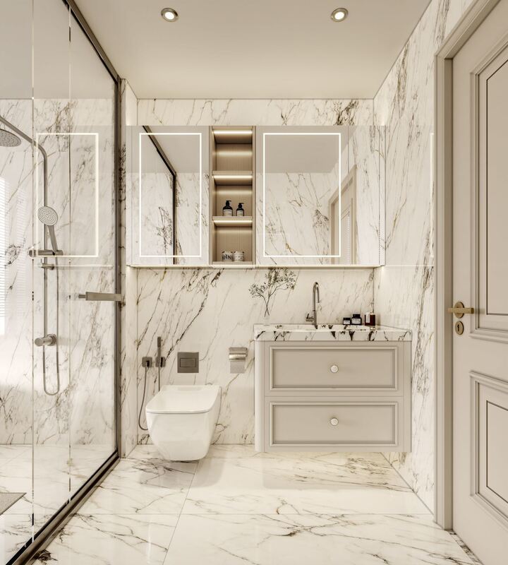 Эта ванная комната представлена как система, основанная на дизайне, а не как общий SKU.Он использует белый цвет вместе со структурой шкафа из нержавеющей стали, чтобы создать более четкую визуальную идентичность для премиальных жилых проектов.