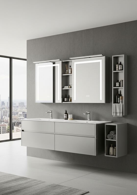 | Использование | Тумбы в мастер-ванных комнатах городских квартир, лофт-конверсий, жилых проектов в индустриальном стиле и гостиничных пространств, разработанных архитекторами, требующих долговечного, гигиеничного, визуально сдержанного хранения |
