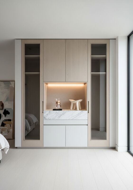Fadior позиционирует этот гардероб в спальне как проектное решение, построенное вокруг 304 пищевой системы из нержавеющей стали с четверти-пилованным европейским белым дубовым фанером (ультрамат-окончание),мато-белые лаковые акцентные панели, прозрачное плавучее стекло с полированным краем, зерно четверти-пило, ультра-мат поверхность, близок к нулю блеск, прохладный блондин тон,и мраморный столешницы с мягкой серой венной верхней для первичной спальни ходьбы в шкафах, раздевалки, роскошные жилые шкафы, установки для хранения, установленные архитектором.Данная спецификация сосредоточена на четверти-пиловой европейской белой дубовой фанере на 304 нержавеющей стали , почти нулевой блеск, интегрированный витрина с прозрачным стеклом и полированными краями, чтобы дизайнеры, дилеры и покупатели проектов могли оценить соответствие, отделку,и логики доставки с меньшим количеством догадок.