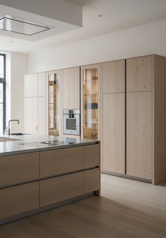 | Материал и производительностьСтруктурная система из нержавеющей стали пищевого качества 304 с четвертипиленной европейской белой дубовой фанерой (ультрамат, почти нулевой блеск), матовыми акцентами белого лака (окончание яичной оболочки),прозрачное плавучее стекло с полированными краями поддерживает влагостойкость, стабильность отделки и долгосрочное повседневное использование на высококачественных жилых кухнях в домах, спроектированных архитекторами, в домах коллекционеров, жилых помещениях, прилегающих к галереям, и проектах, требующих спокойствия,изделие для максимизации светаЭто важно, когда покупателям нужен архитектурный вид без риска обслуживания на основе дерева. |